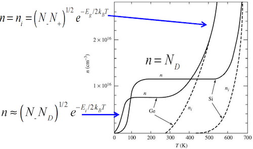 - 与带隙宽度有关,带隙越小,浓度越高。