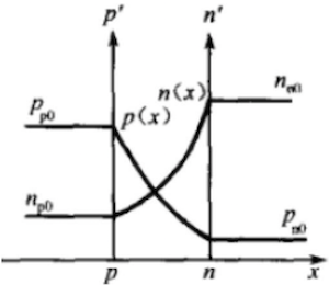 - 边界少数载流子浓度:势垒区的强电场将边界附近的少子迅速“抽取”到对面,导致边界处少子浓度趋近于零: