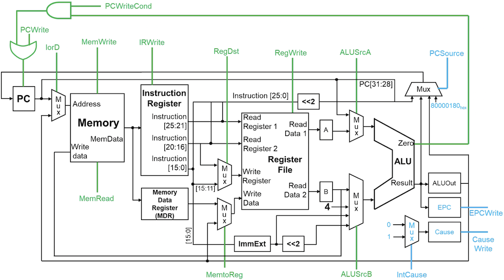 | ALUSrcA | 0 | 0 | 1 | 1 | 1 | 1 | - | - | - | - | - |
