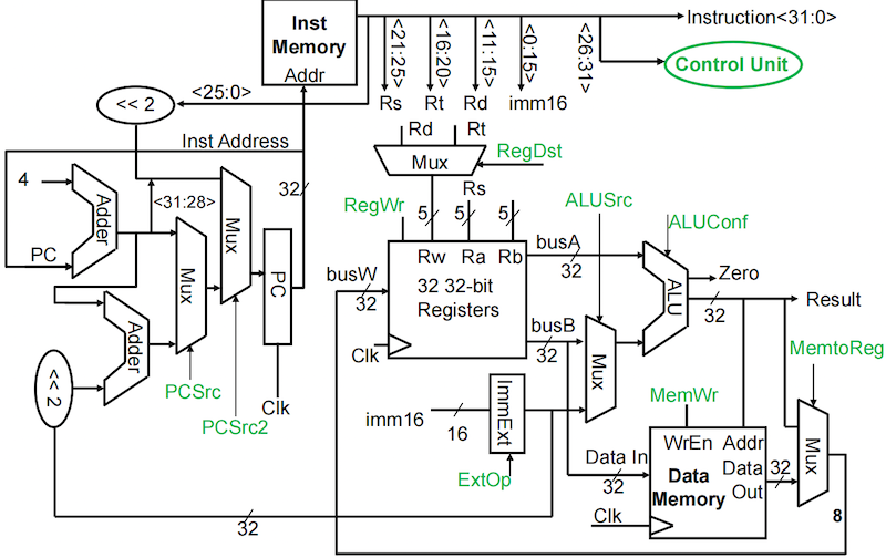| RegDst | - | - | - | - | - | - | - | 1 | - | - | 0 |