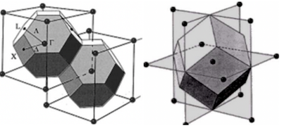 - 在倒格子空间中,以某倒格点为中心,由该中心格点到相邻格点的连线的垂直平分面所围成的多面体。
