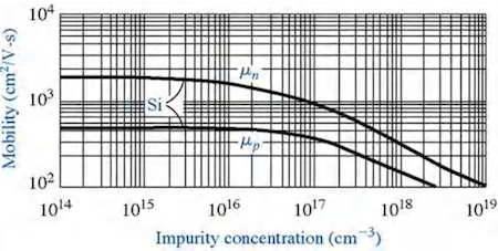 - 掺杂浓度:载流子的迁移率由总的掺杂浓度决定。掺杂浓度越高,杂质散射越强,迁移率越低。