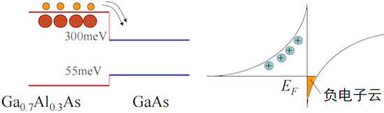 通过在宽禁带材料(如 AlGaAs)中掺杂,而邻近的窄禁带材料(如 GaAs)不掺杂。电子会从 AlGaAs 转移到 GaAs 的界面附近,被限制在一个极薄的量子阱中,形成二维电子气 (2DEG)。