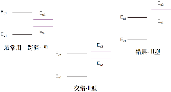 - 三种能带对齐方式:根据两材料能带的相对位置,分为 I 型、II 型和 III 型。