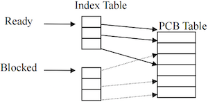 - 索引结构: 将同一状态的进程归入一个索引表,由索引指向 PCB,不同状态对应不同的索引表。